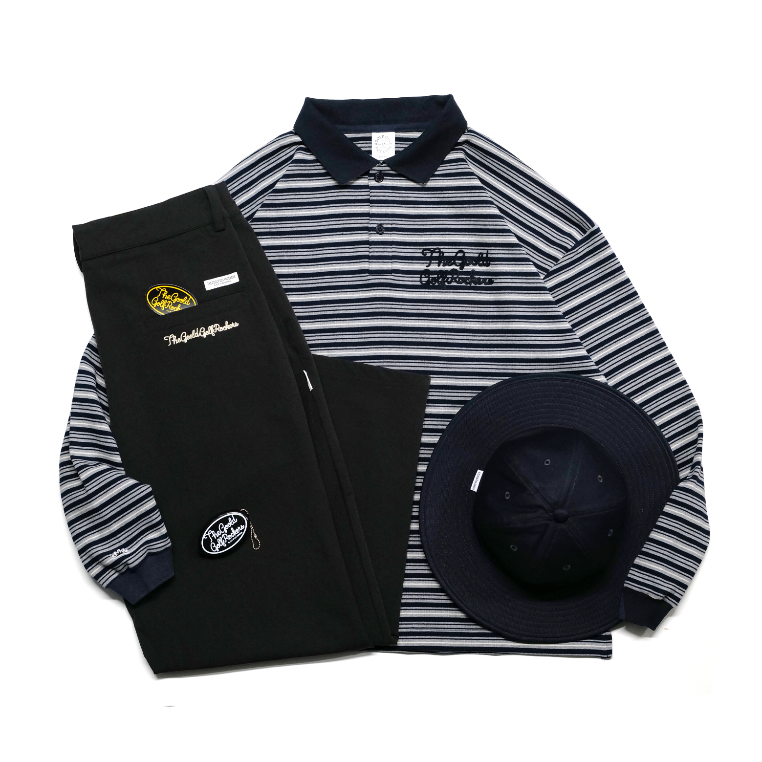 セット内容は、ロングブリムハット・ポロシャツ・2タックパンツ・コインケースの4点セット。