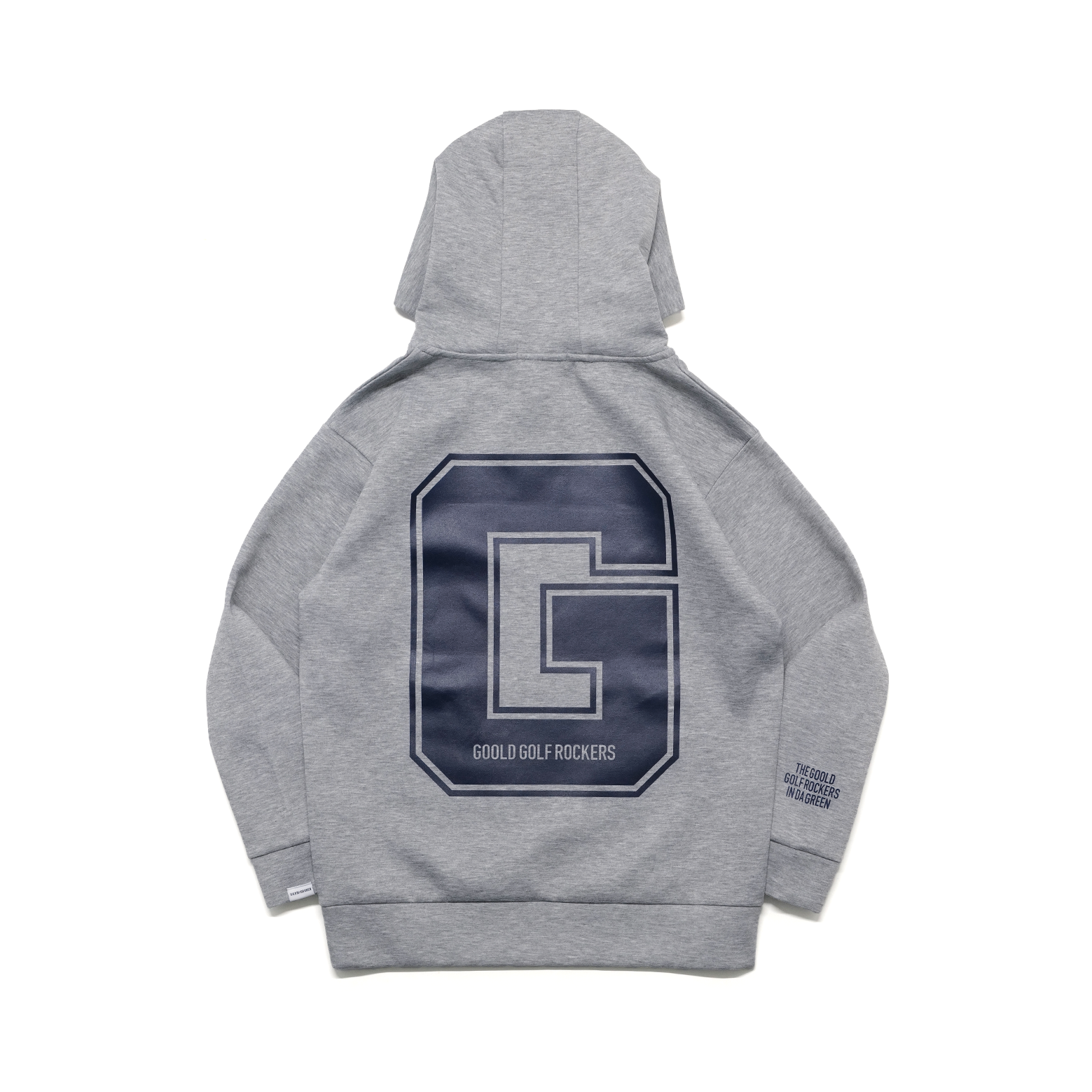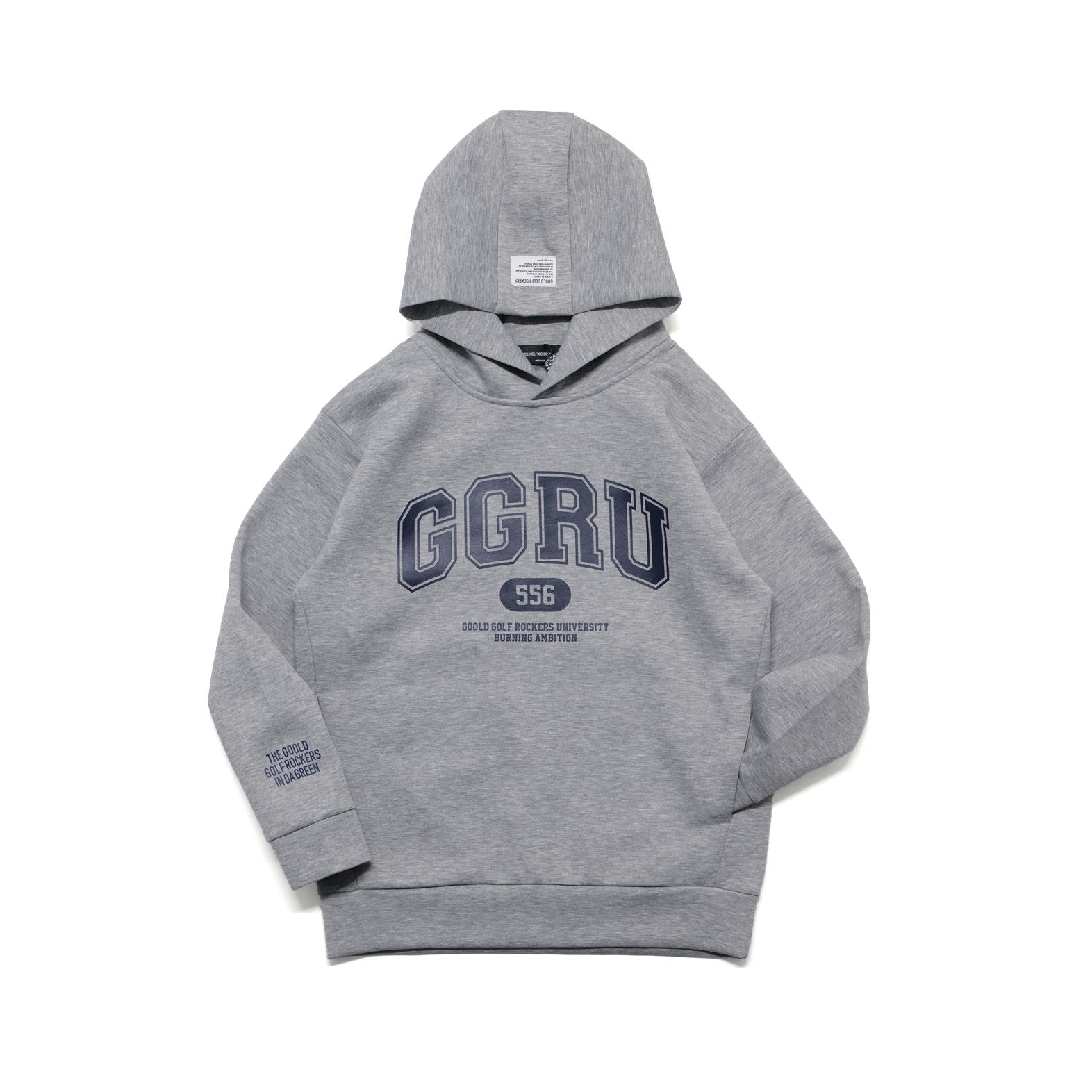 胸にはGGRUのカレッジロゴ、背中にはチームの象徴であるBIG-Gロゴをシルクスクリーンプリントした9.4オンスのダブルニットフーディー。