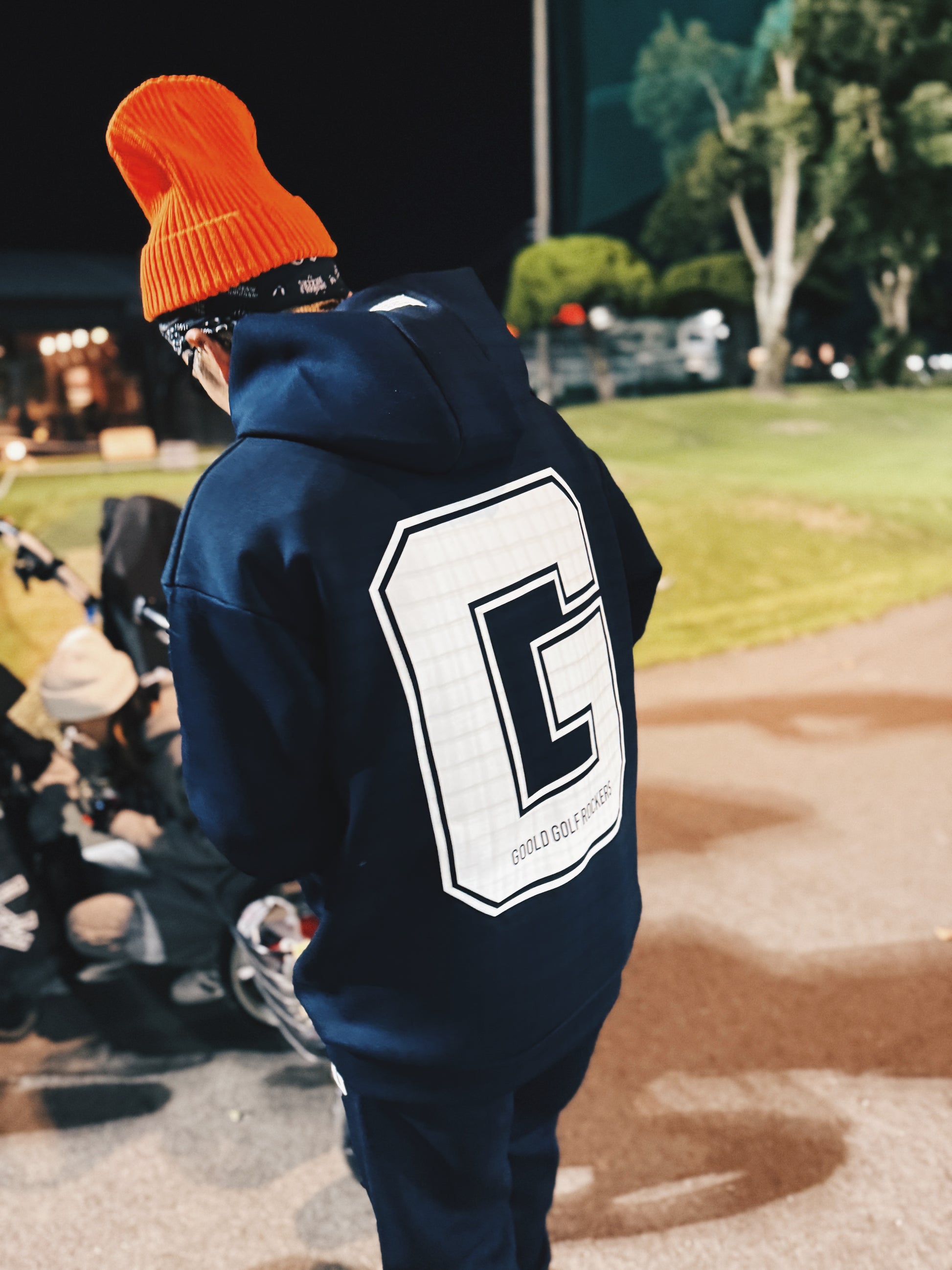 胸にはGGRUのカレッジロゴ、背中にはチームの象徴であるBIG-Gロゴをシルクスクリーンプリントした9.4オンスのダブルニットフーディー。